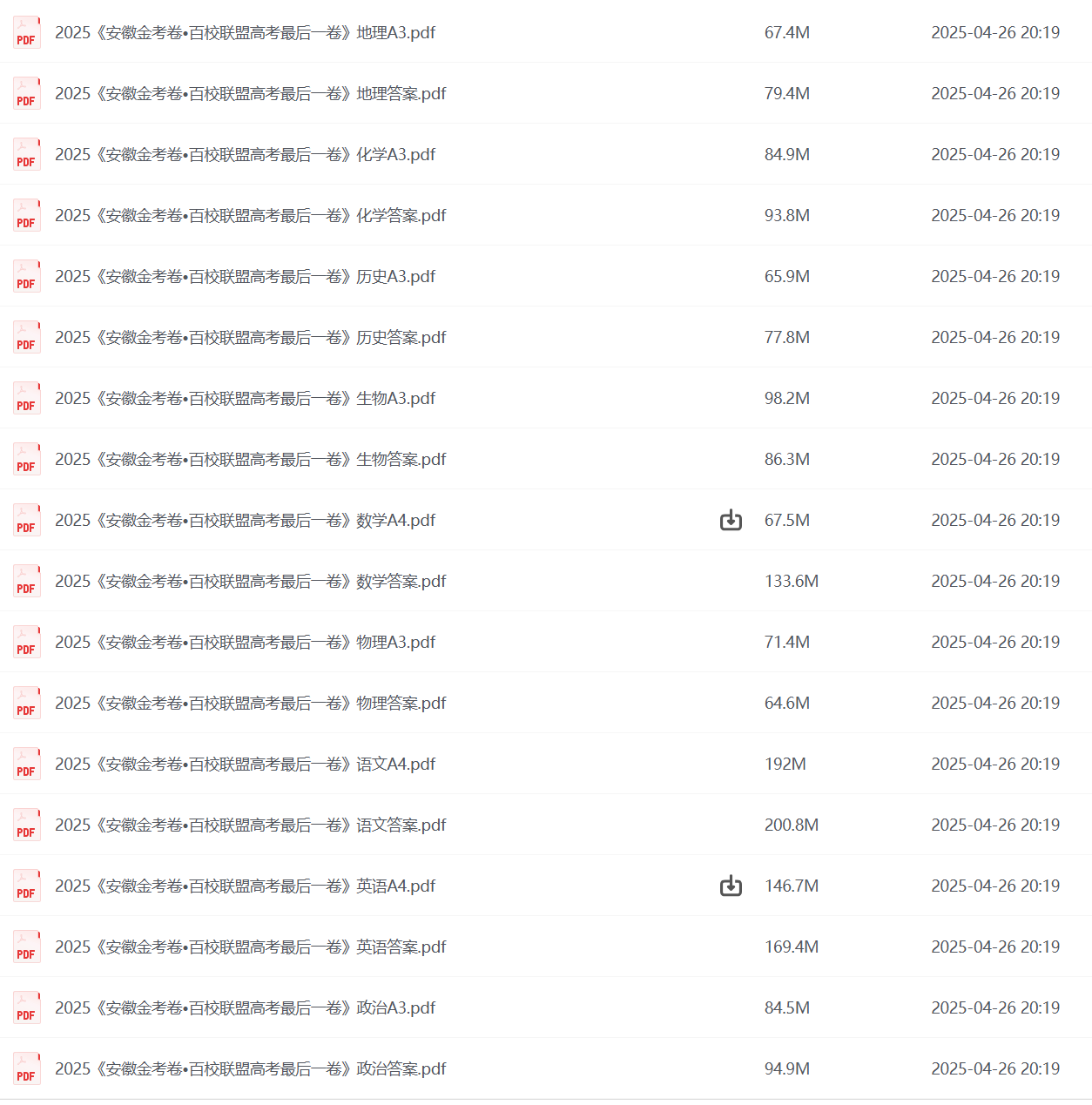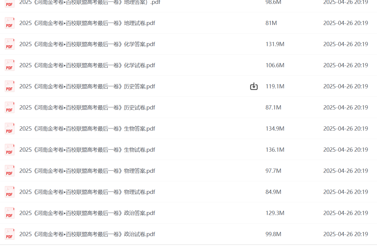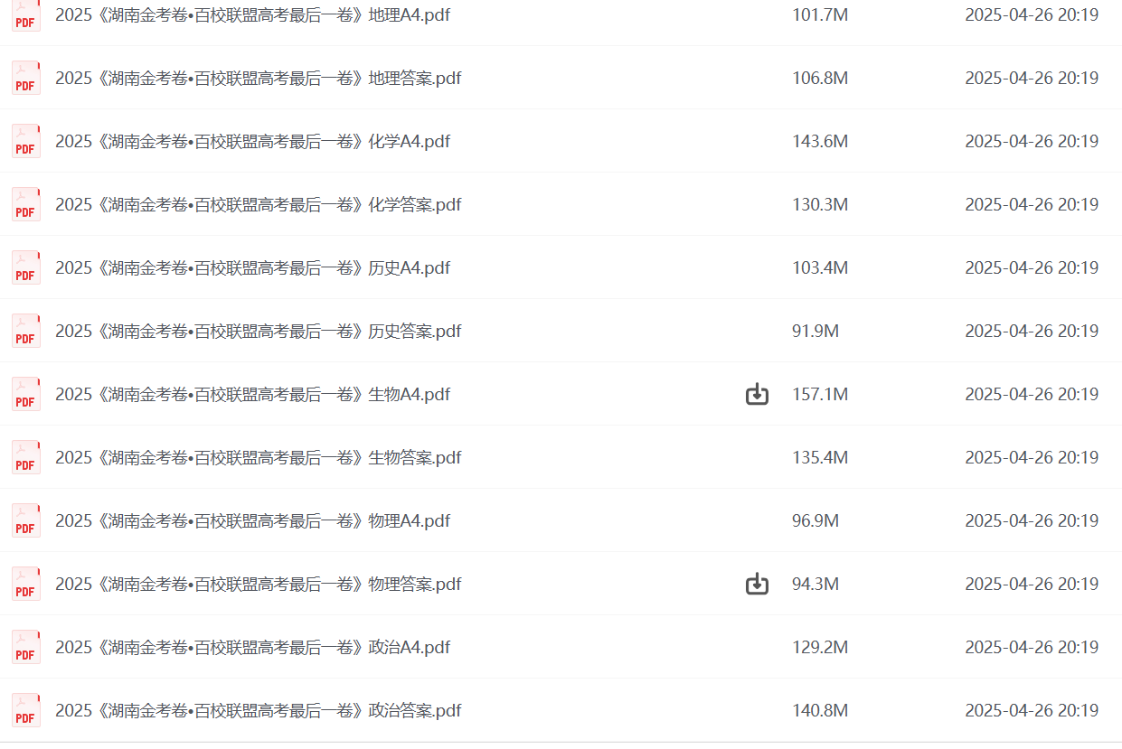 上一篇:2024-2025高三高考 2025 4月各地高中名校 试卷合集 百度网盘下载