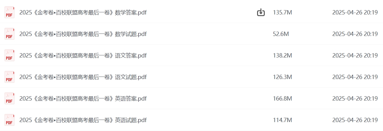 本文标题:天星教育 金考卷 2025百校联盟高考最后一卷 (多版)
